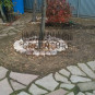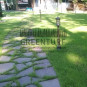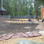Изначально планировалось сделать работы по устройству посевного «теневого» газона, сорт GreenParkShadowLawn. В процессе добавилась система автоматического полива, спортивная площадка, тропинки из натурального камня, декоративные деревья и кустарники.